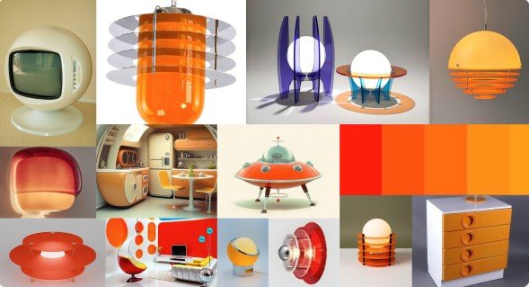 The mood board focuses mainly on the late 1970s, embracing an aesthetic founded on fluid, free-form, and saturated colors. By focusing on a soft, circular form for the final shape, Lumiere moves toward a more approachable.