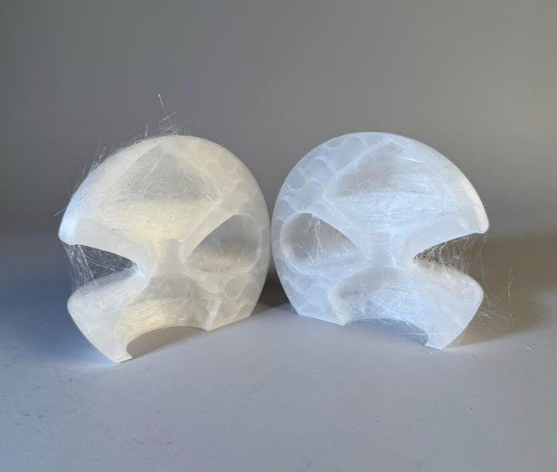 With the first print, the interior was a bit too brittle and started to break easily, and there were too many loose hairs on the model.