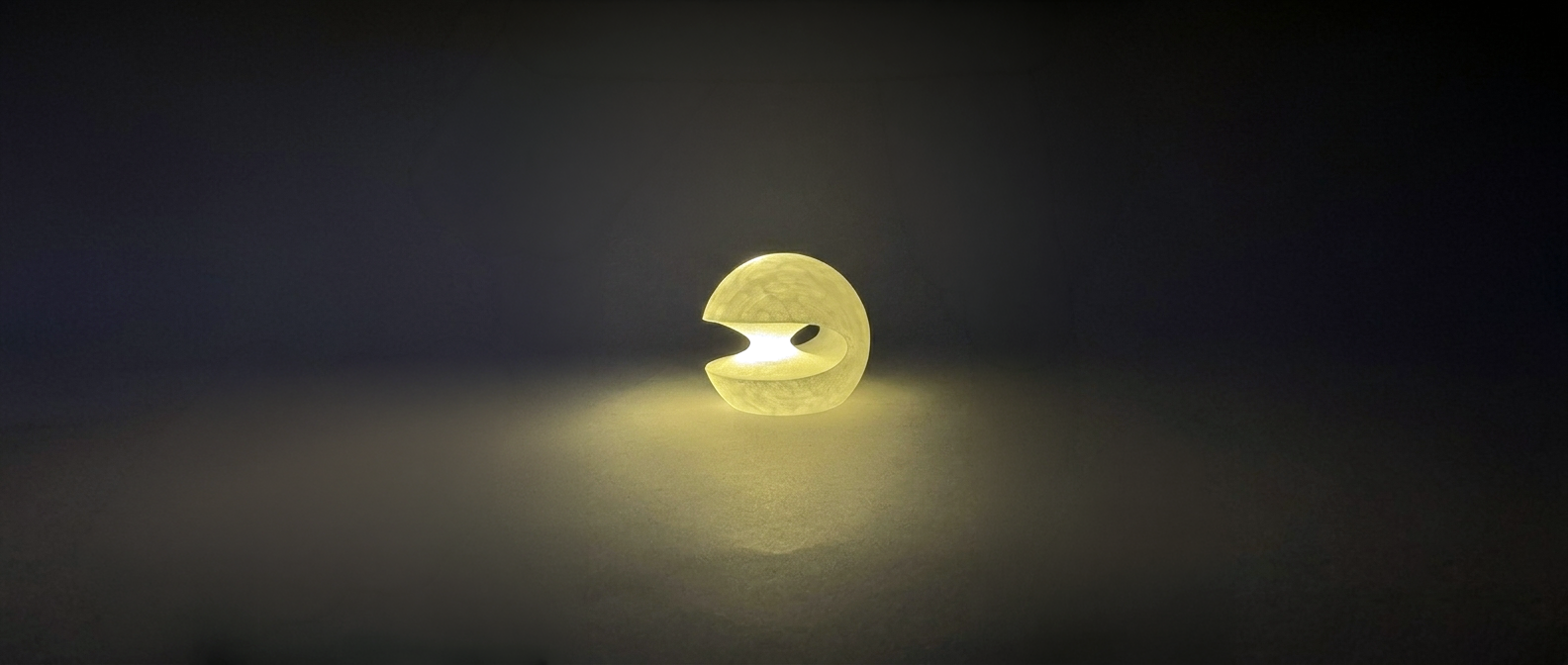 By 3D printing the body from a transparent PLA, we’ve created a shell that is a natural diffuser. The interior is completely hollowed out, making the light from the LED travel through the material and fill the entire circular shape, creating a warm, consistent glow.